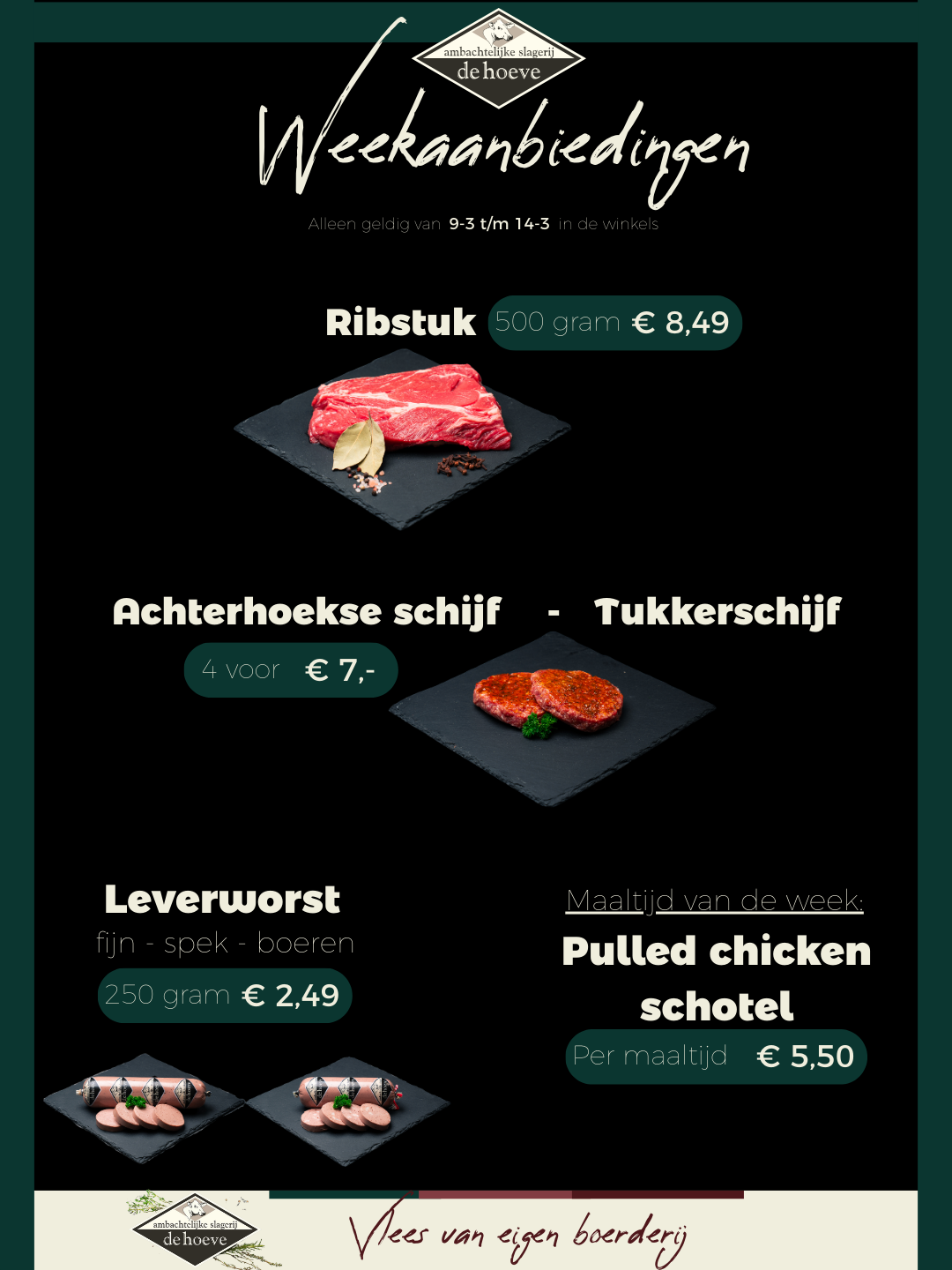 Elke week selecteren onze slagers de beste stukken vlees voor extra scherpe prijzen.